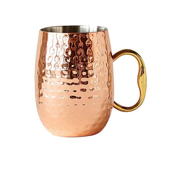 แก้วมักมอสโกมิวล์สีทองแดงพร้อมหูจับทองเหลืองสำหรับเครื่องดื่มเย็นดื่มไวน์เบียร์ใช้ตกแต่งบ้านในโรงแรมดีไซน์เพชรระดับพรีเมี่ยม