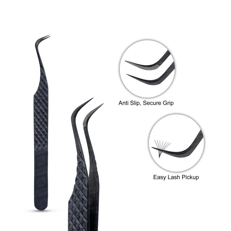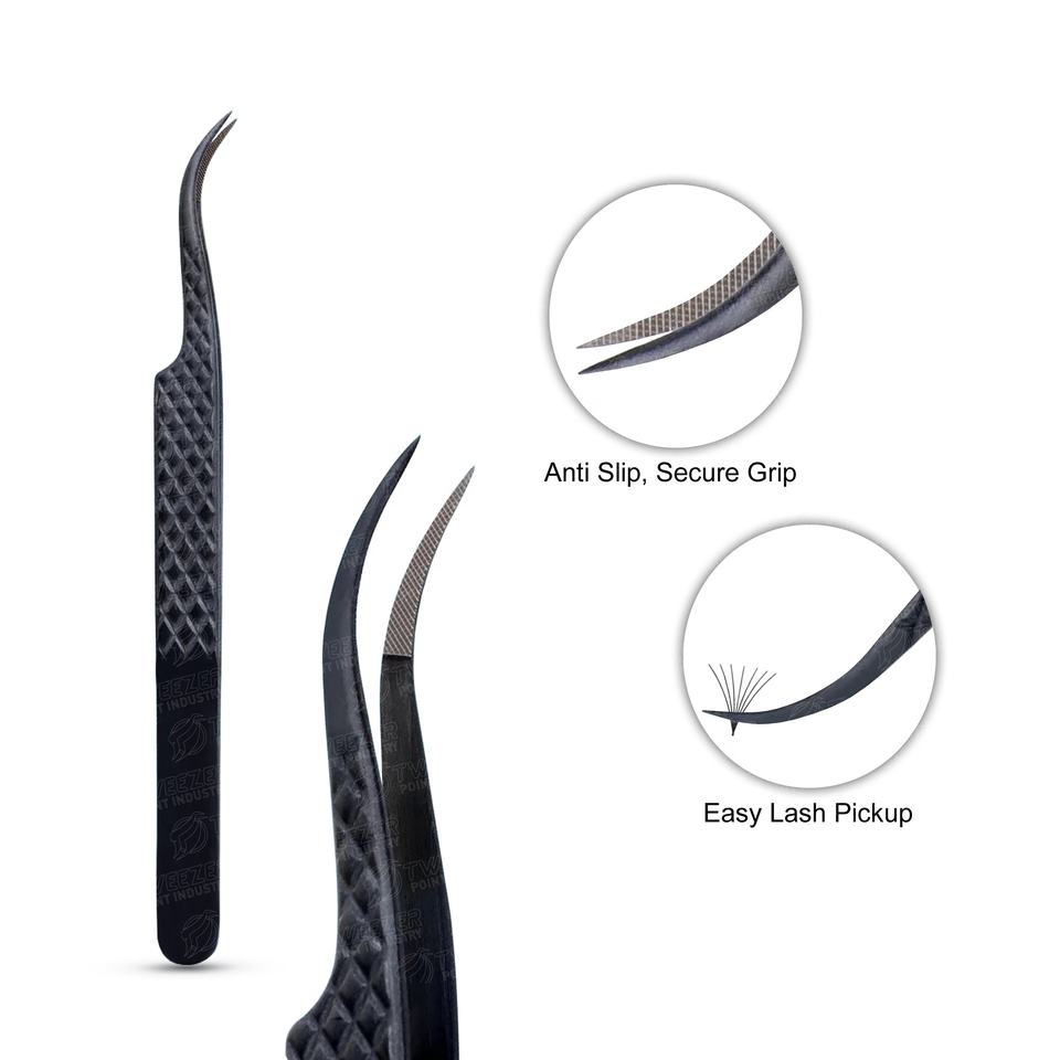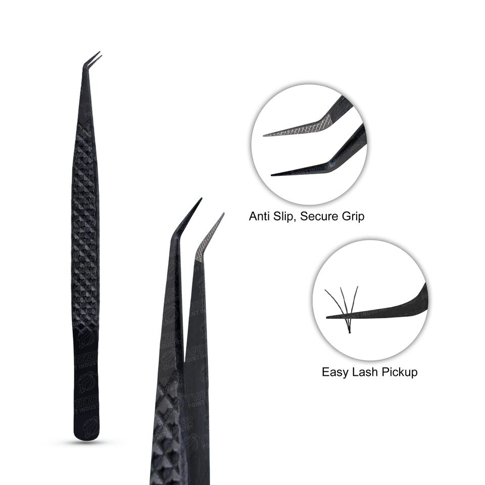 Diamond Dusted Tip Pointed Easy Pickup Miner Lashes Black 45 90 Degree Hold Slim Thin Eyelash Extension Tweezer Stainless Steel