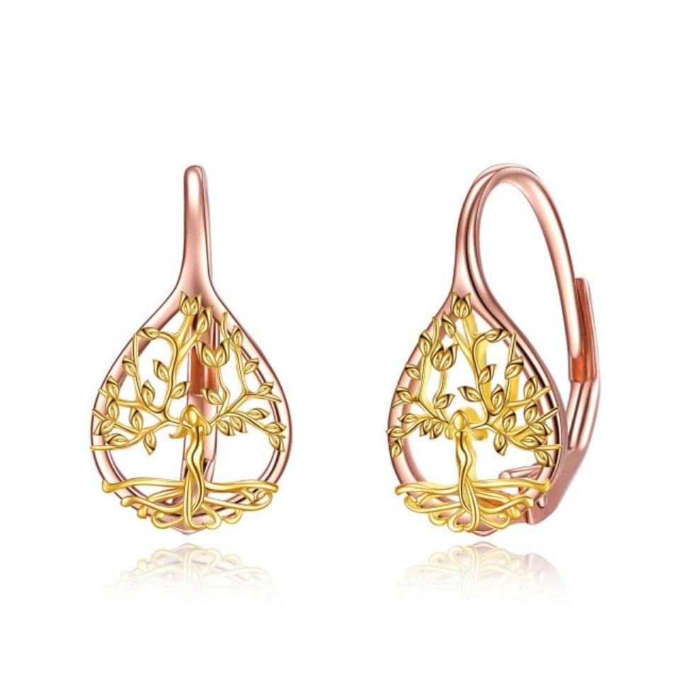 Silver-Two-Tone Tree of Life Lever-back Earrings