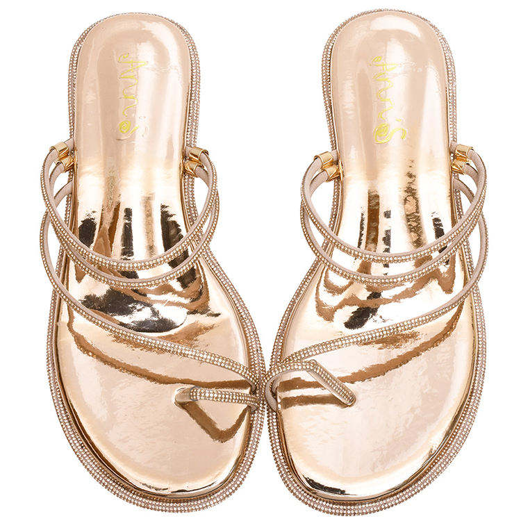 รองเท้าแตะส้นแบนสายรัดกว้างขอบเพชร