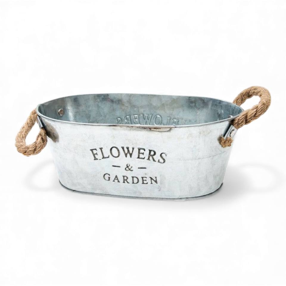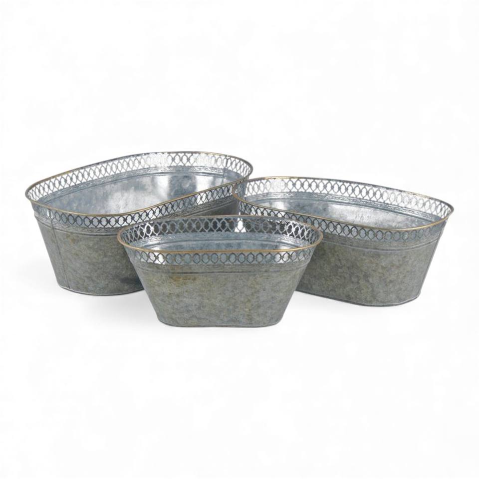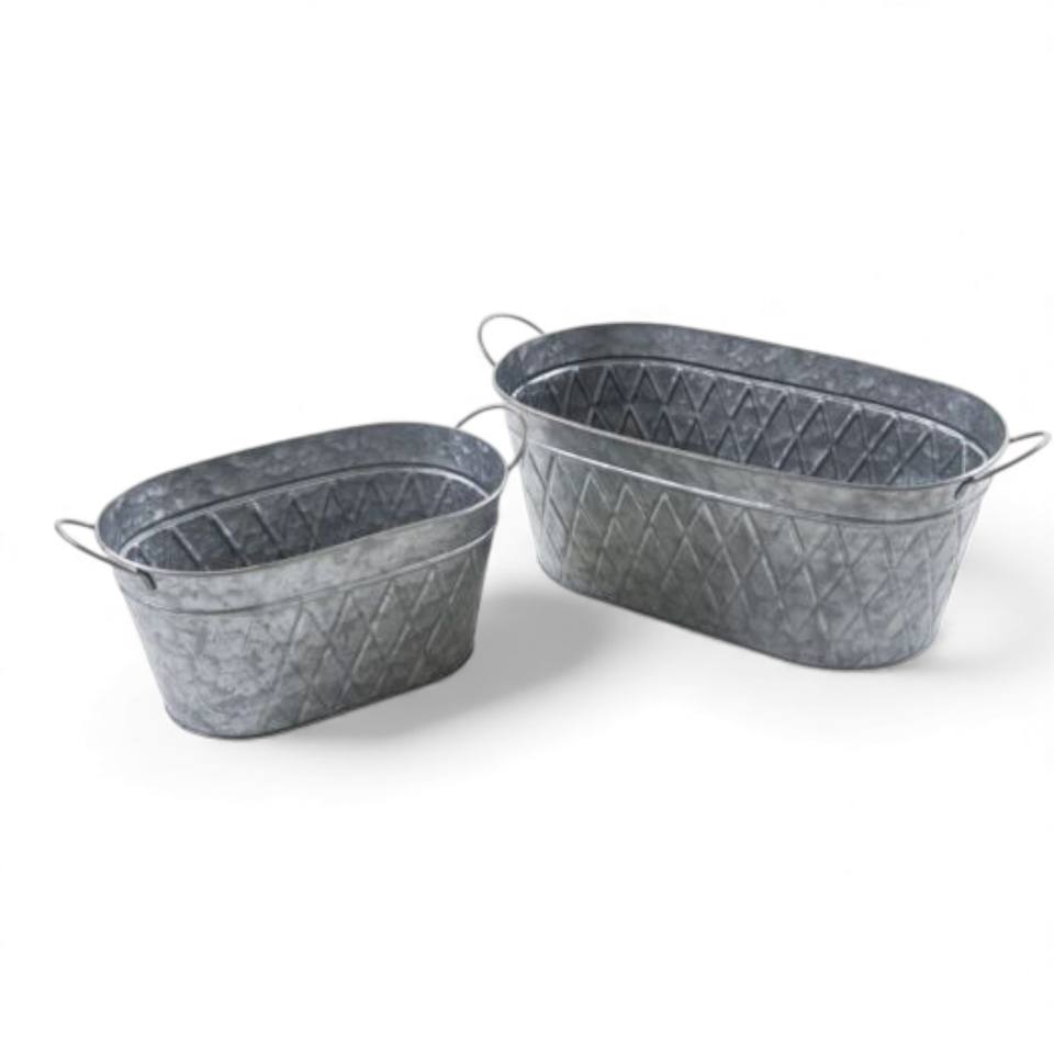 กระถางปลูกต้นไม้รูปวงรีเคลือบสังกะสีลายนูนเพชร ชุดภาชนะโลหะสไตล์ชนบท สำหรับปลูกต้นไม้ในร่ม ระเบียง และสวนสไตล์บ้านไร่