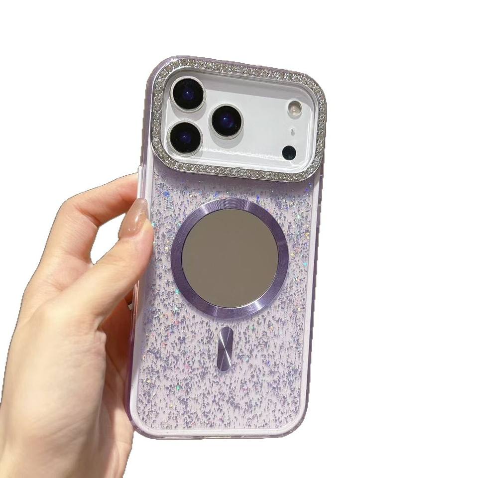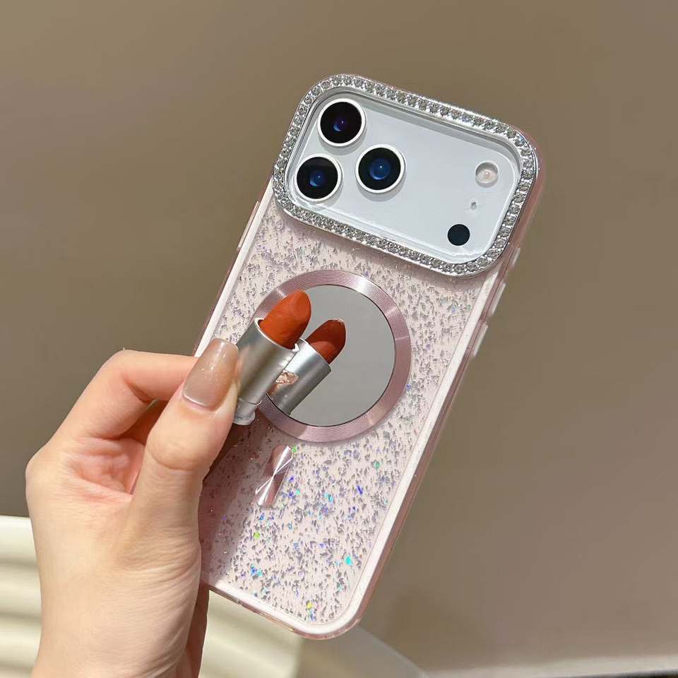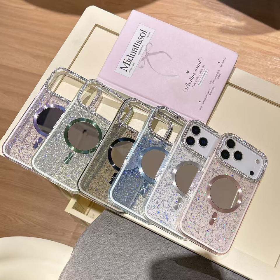 เคสโทรศัพท์มือถือกากเพชรพร้อมกระจกติดกระจกสำหรับ iPhone 17 16 15 12 13 14 11 Pro Max PLUS XR XS ฝาหลังแม่เหล็ก17 Air