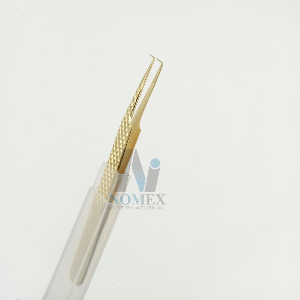 ปากคีบต่อขนตาแบบด้ามจับเพชรทำจากสเตนเลสสตีลทนทานป้องกันไฟฟ้าสถิตย์ได้อย่างแม่นยำ90องศาดูแลส่วนบุคคล