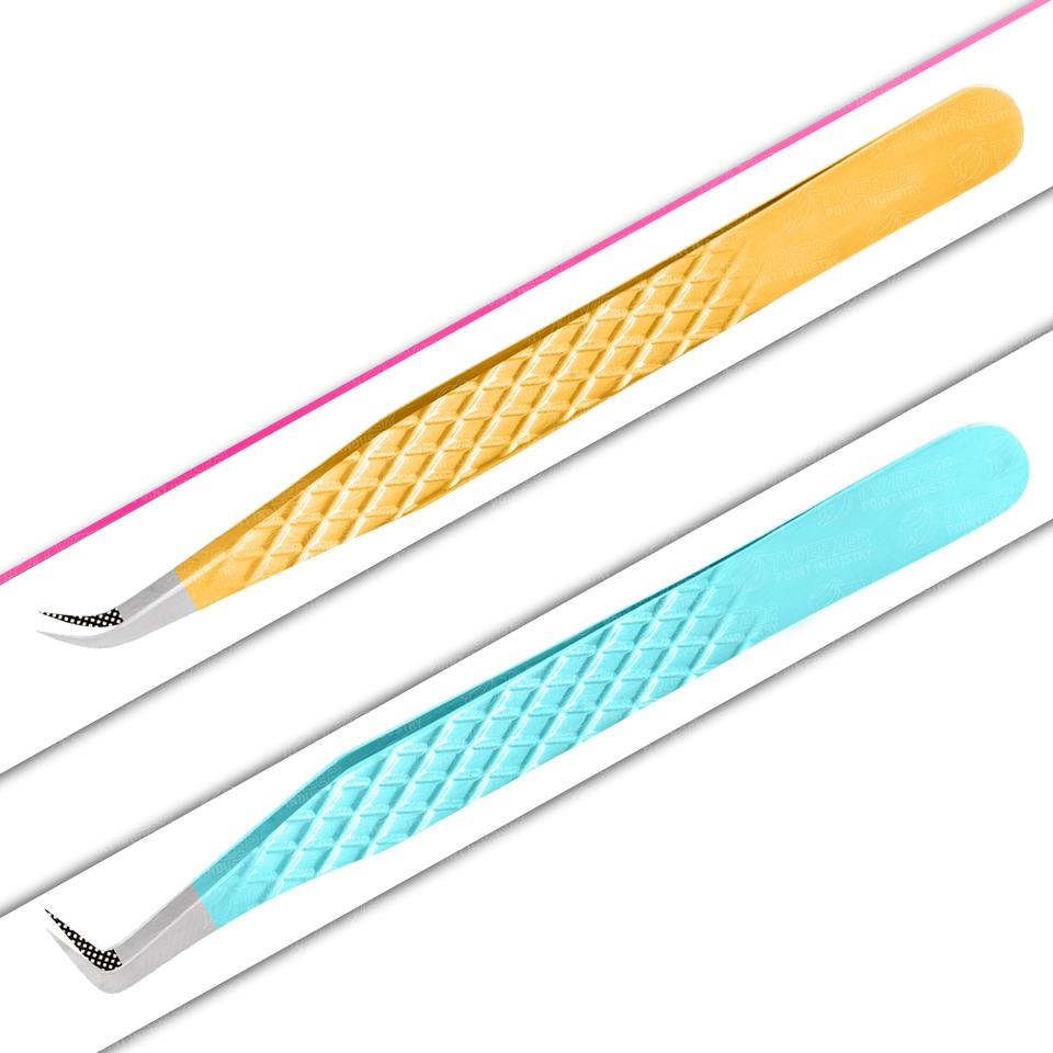 แหนบต่อขนตาสแตนเลสแบบมีด้ามจับประดับเพชรอุปกรณ์เสริมความงามสำหรับขนตา