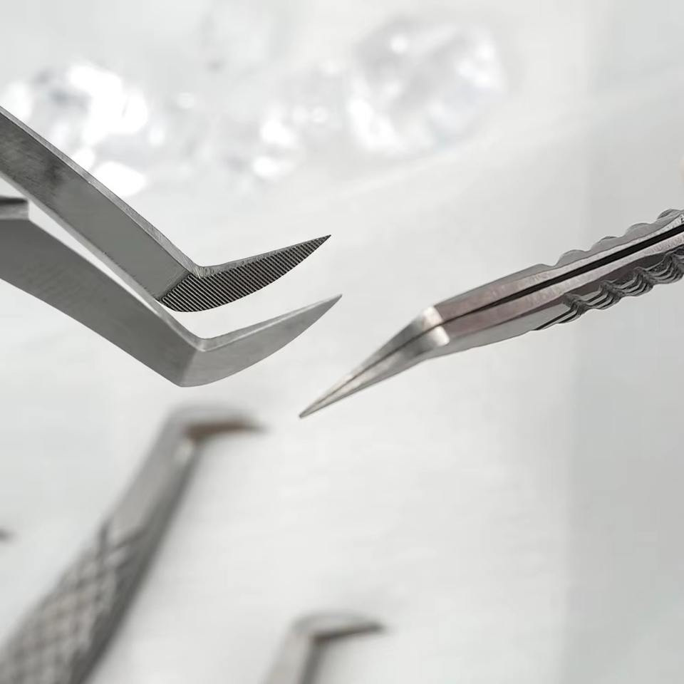 แหนบติดขนตา Diamond Grip Lash Tweezers แบรนด์ส่วนตัว สีชมพู สแตนเลส ปลายไฟเบอร์ 45 90 องศา แบบด้าน ป้องกันแม่เหล็ก ขนาด 10 มม.