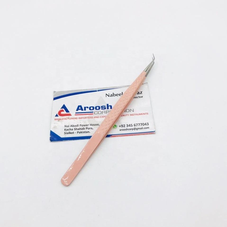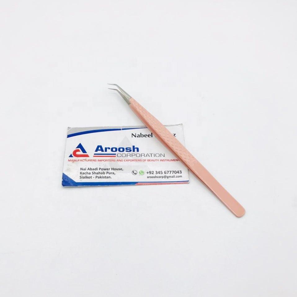 คีมหนีบขนตาสแตนเลสเคลือบพีชติดเพชรปลายเงิน45องศาชนิดทนทานและแหลม