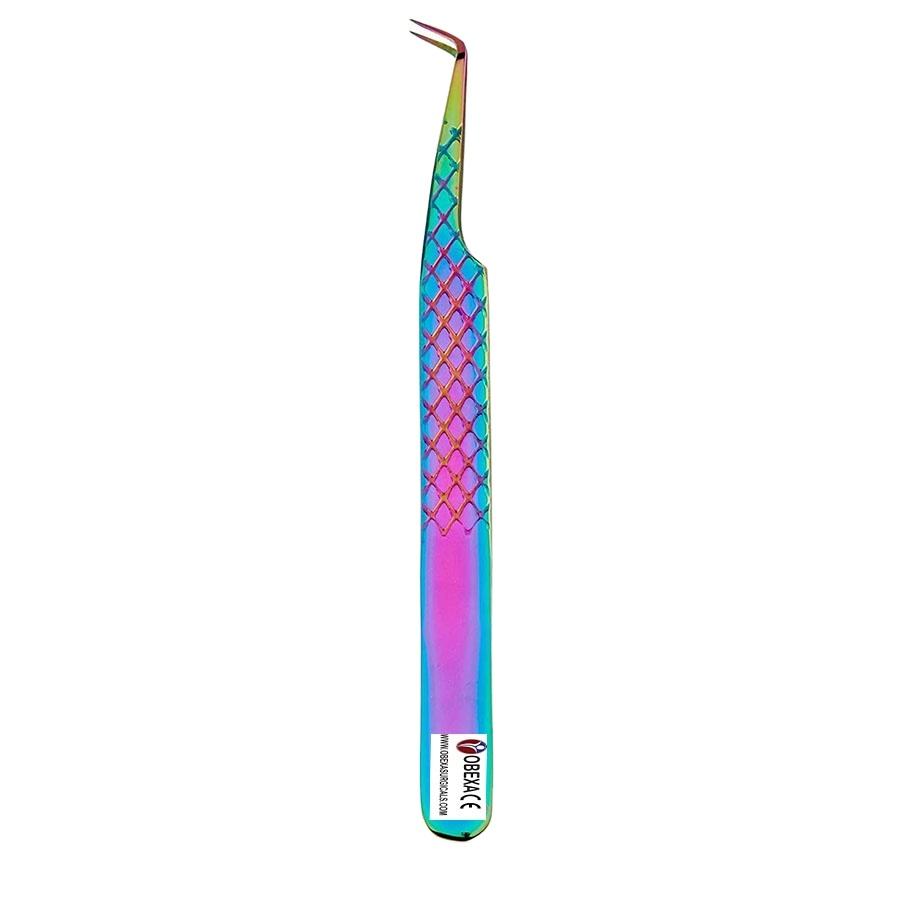 แหนบต่อขนตาปลายแหลม 45 องศา สแตนเลสสตีล รุ่น Obexa Diamond Grip สีรุ้ง