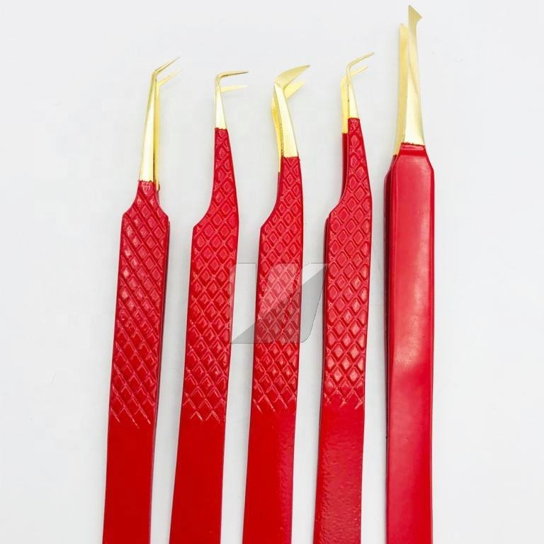 Diamond Grip Red Japanese Stainless Steel Eyelash Extension Tweezers Custom Logo Gold Pointed Sustainable Volume Fiber Eye Lash