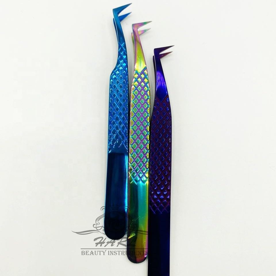 ที่หนีบขนตาเพิ่มวอลลุ่มแบบรัสเซียที่ดัดขนตาปลอมสีม่วงสีรุ้งและสีฟ้า
