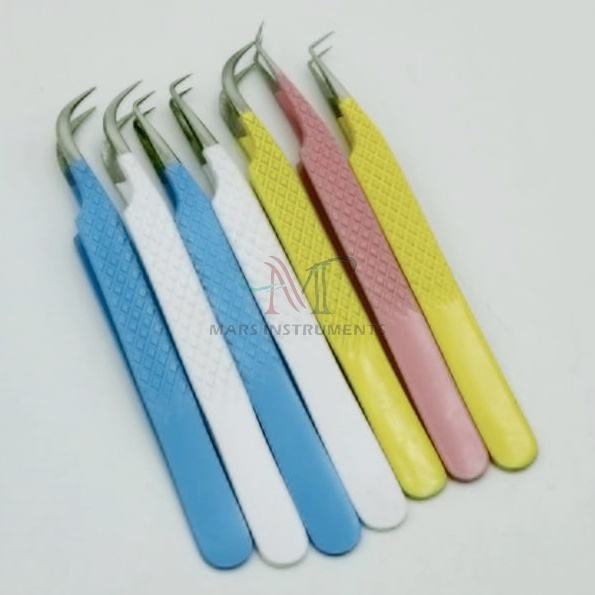 แหนบต่อขนตาสแตนเลสแบบด้ามจับเพชรปลายแหลมอุปกรณ์ต่อขนตาแบบยั่งยืน