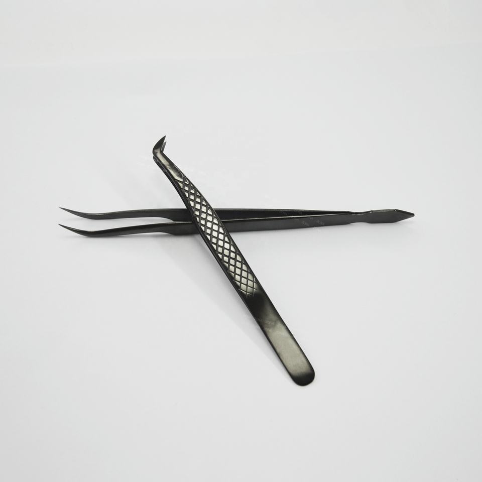 แหนบขนตาปลอมแบบมีด้ามจับประดับเพชรแหนบขนตาปลอมสีดำ