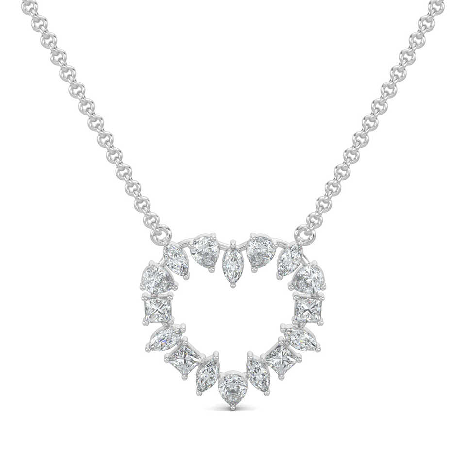 สร้อยคอเพชรรูปหัวใจที่เป็นประกายสง่างาม14K ทองคำขาว25มม. ดีไซน์รูปหัวใจอัญมณีที่มีเสน่ห์3.01ct 3.3G 3.9G