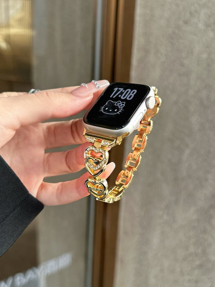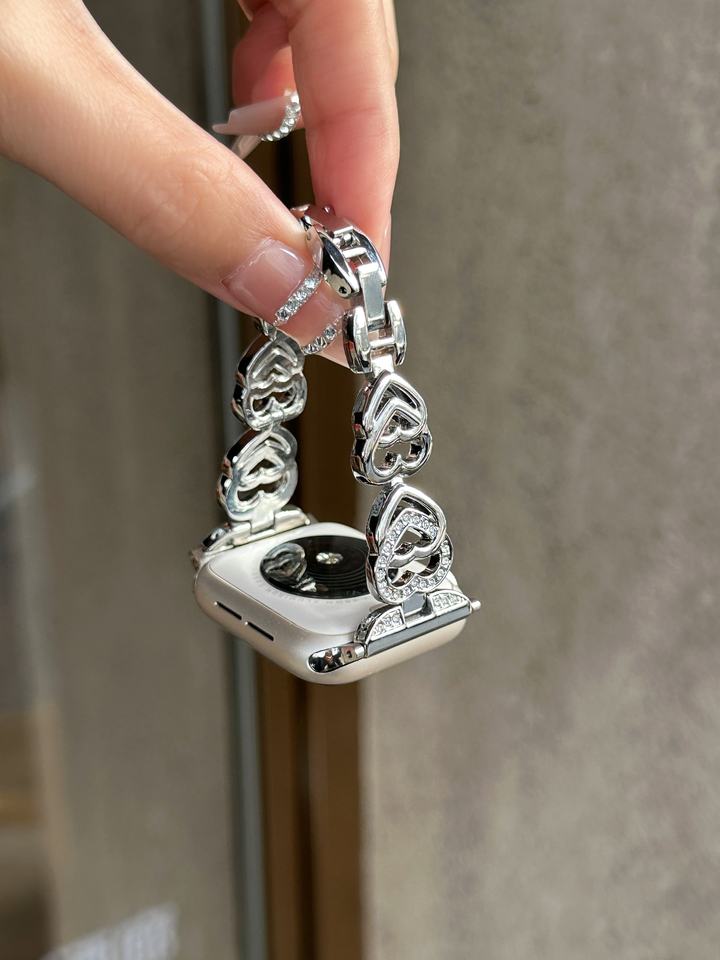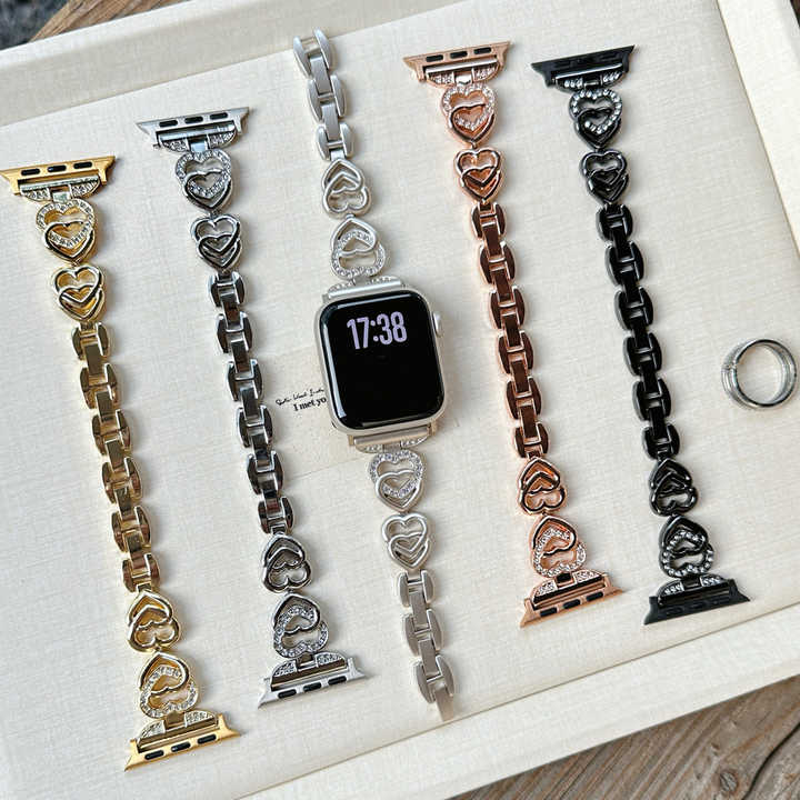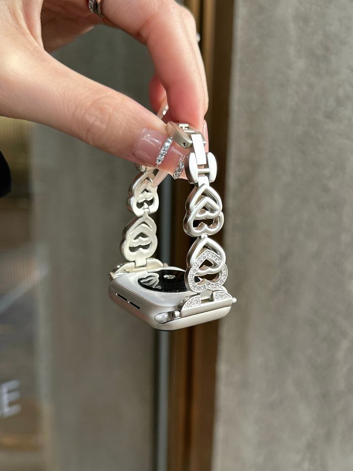 Diamond Heart Zinc Alloy Metal Smart Watch Bands 22mm Luxury Watch Straps for Apple Watch Series 11 10 49mm 46mm Wrist Bracelet