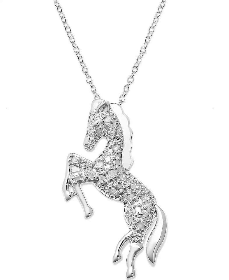 Diamond Horse Pendant Necklace in Sterling Silver (1/10 Ct. T.w.) Model OUT-4328751 | Macy's