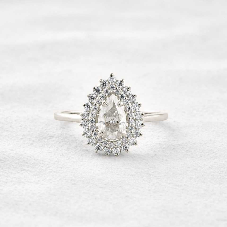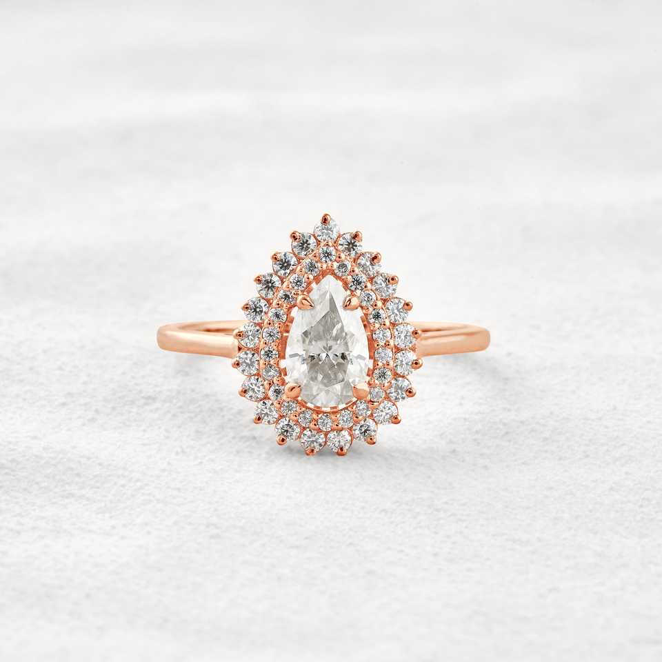 เครื่องประดับเพชร Pear Cut คู่แหวนแต่งงานเพชร CVD แหวนหมั้นเพชรผู้หญิงครบรอบของขวัญหยดน้ําตา Halo