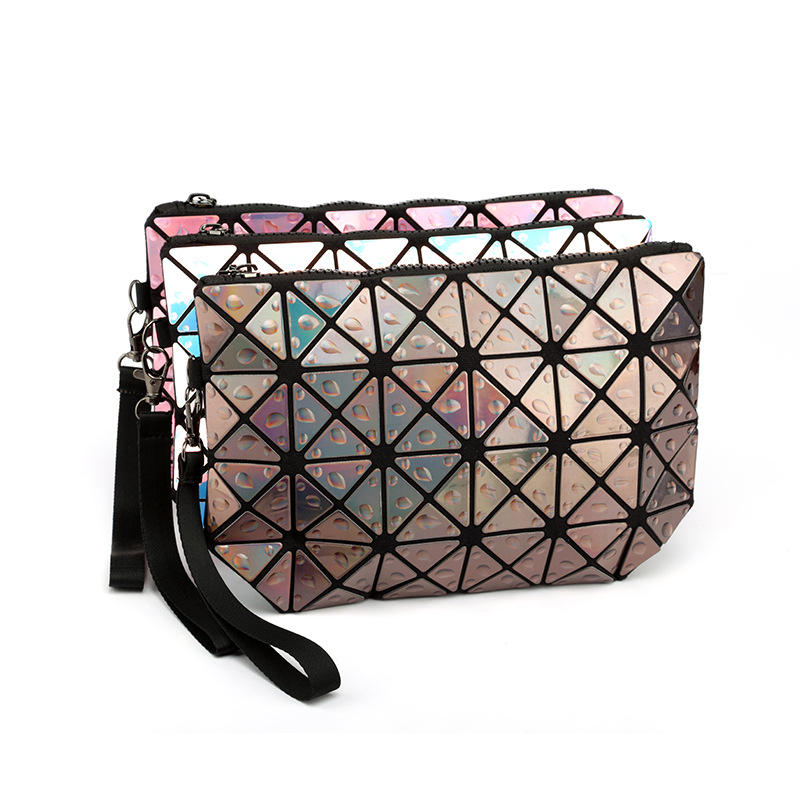 กระเป๋าคลัทช์ทรงเรียบลายตาข่ายเพชรกระเป๋าเครื่องสำอางสุดวิเศษประดับด้วยเลเซอร์