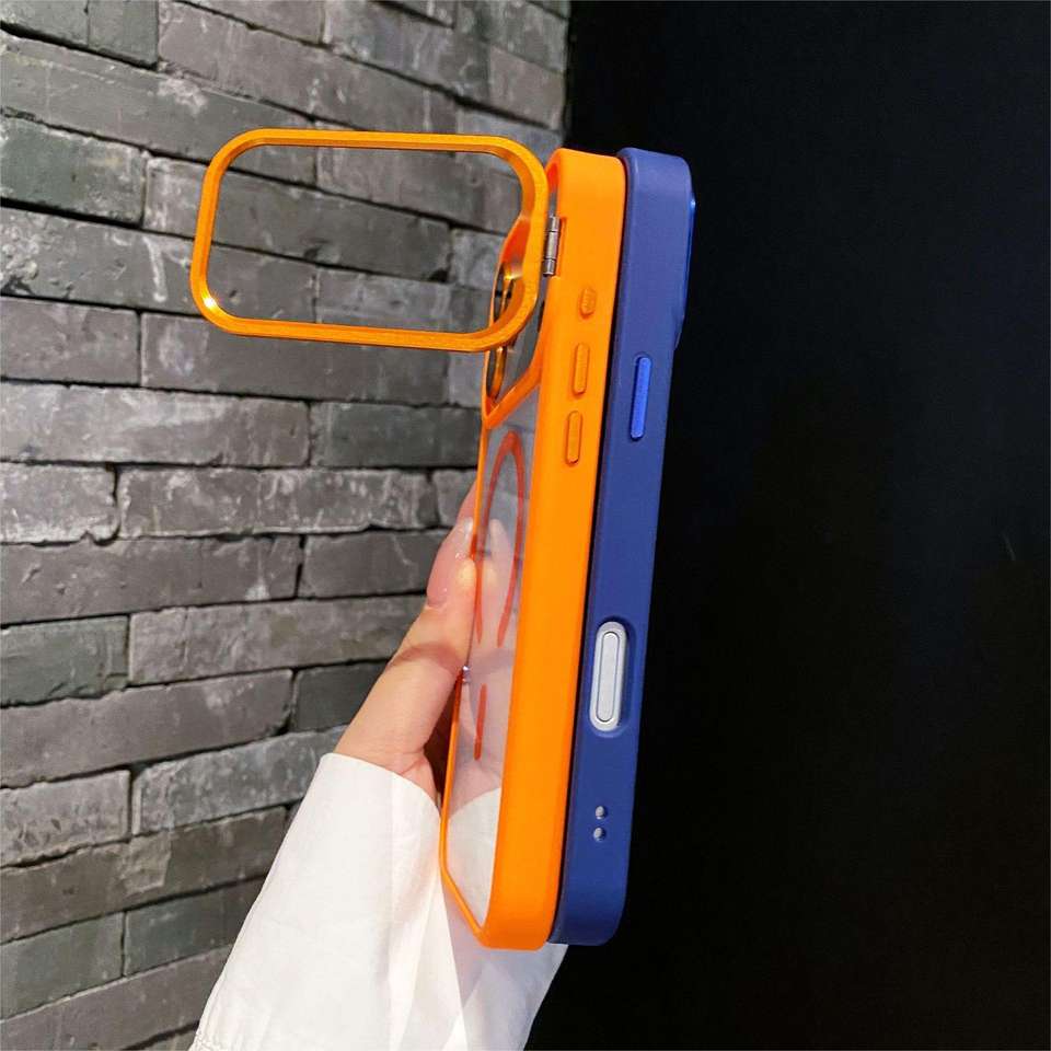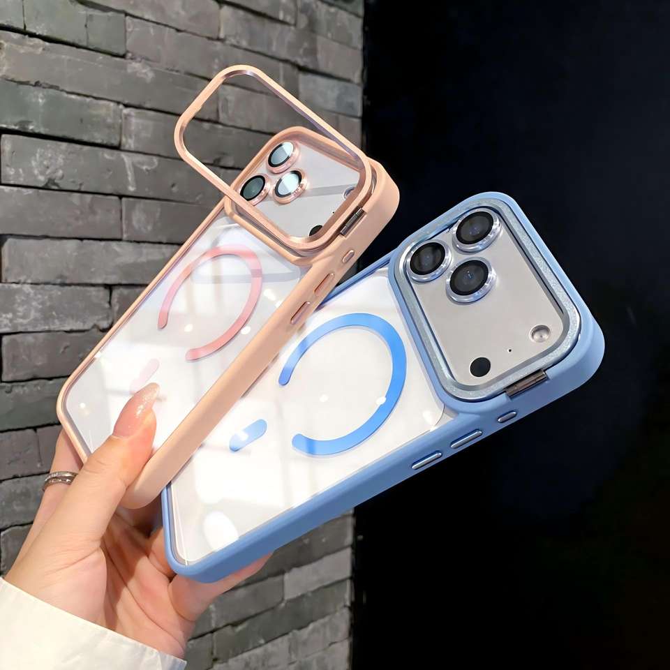 ขายึดเลนส์แบบเพชรพร้อมฟิล์มกันรอย เหมาะสำหรับเคสโทรศัพท์ Apple17 รุ่น 13/14 วัสดุ PC โปร่งแสงสูง ขอบสี พร้อมคลิปแม่เหล็กทรงตัว C