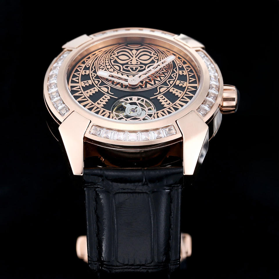 นาฬิกาข้อมือกลไก ไดมอนด์ ลัคกี้ โทเท็ม หน้าปัดคริสตัลแซฟไฟร์ ดีไซน์หรูหรา สีดำทอง โทนสีสุดหรู
