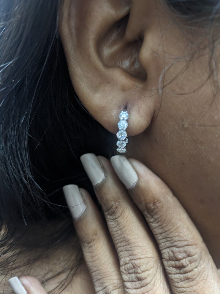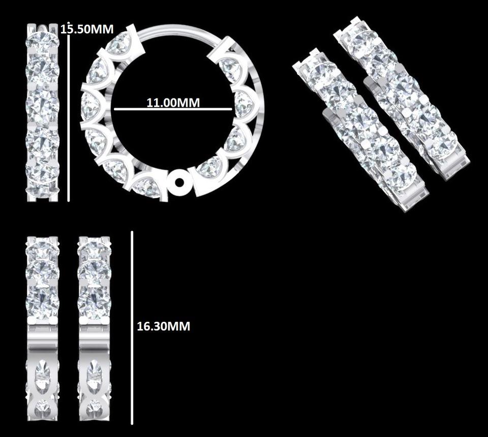แหวนแต่งงานเพชรหรูหรา, เครื่องประดับทองคำขาว 14K แท้, ต่างหูเพชรทรงกลม 2.20 กะรัต เพาะเลี้ยงในห้องปฏิบัติการ, ของขวัญวันวาเลนไทน์