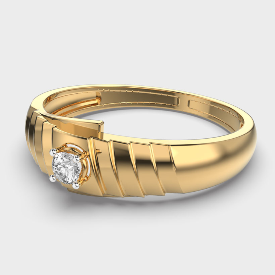 แหวนเพชรสำหรับผู้ชายแหวนเพชร0.50กะรัตสำหรับห้องแล็บทรงกลมดีไซน์บันไดสีเหลืองทอง14K สำหรับผู้ชาย