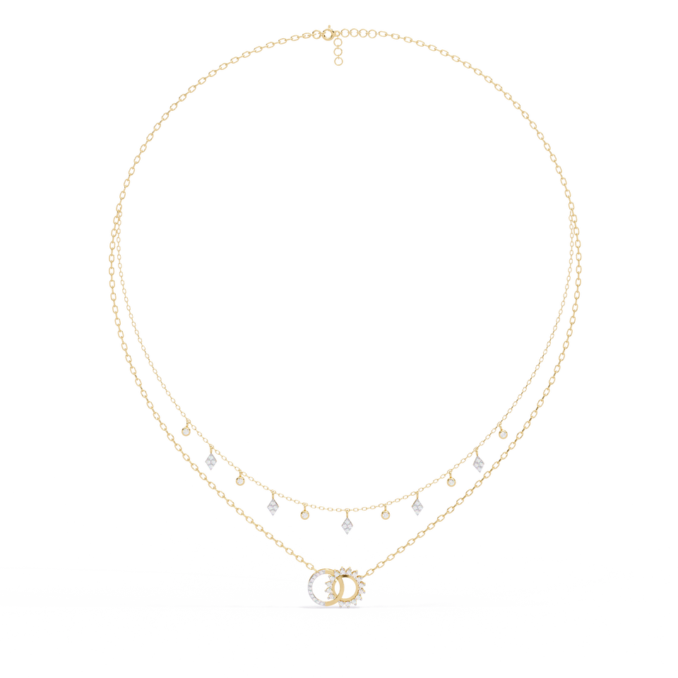 สร้อยคอเพชร ดีไซน์แบบหลายชั้น เพชรเจียระไนจากห้องปฏิบัติการ เงินแท้ 925 ชุบทอง เครื่องประดับแฟชั่นสำหรับผู้หญิง