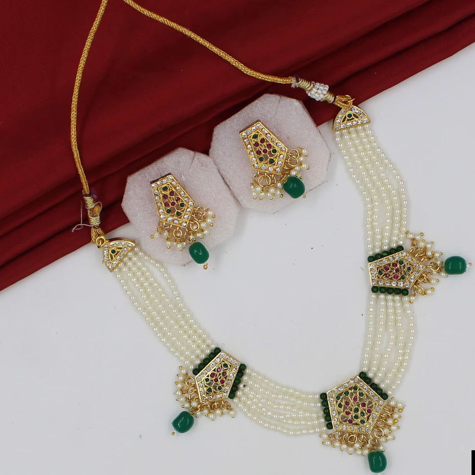 ชุดสร้อยคอเพชรสำหรับผู้หญิงฐานโลหะผสมสีเขียวสีแดงเครื่องประดับเจ้าสาวแบบดั้งเดิมชุดชาติพันธุ์อินเดียขายส่ง