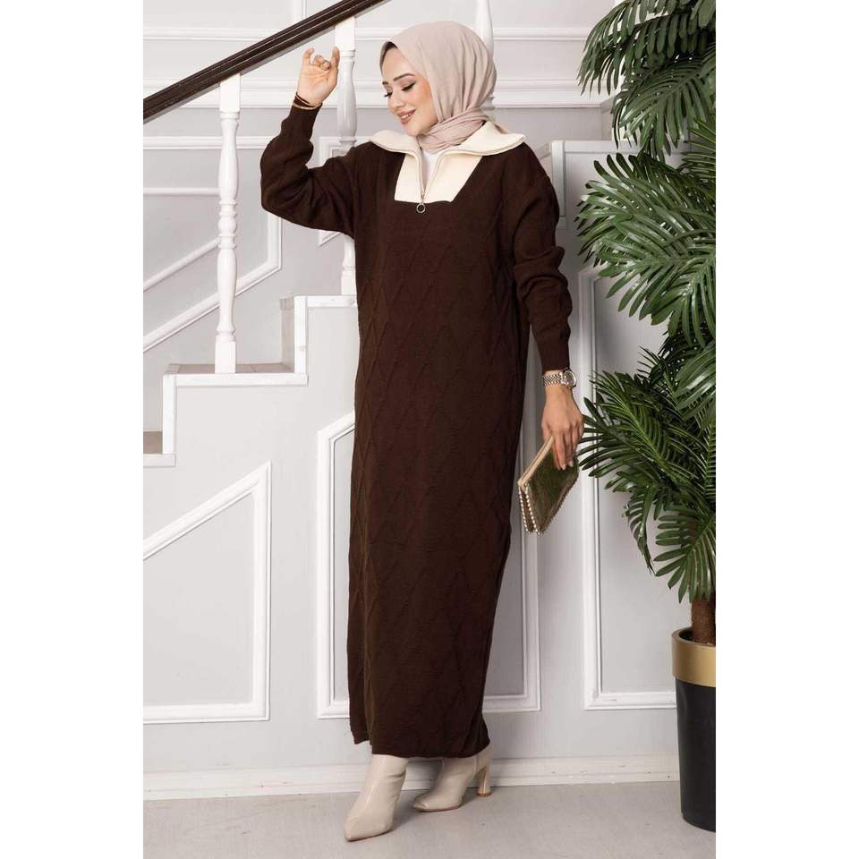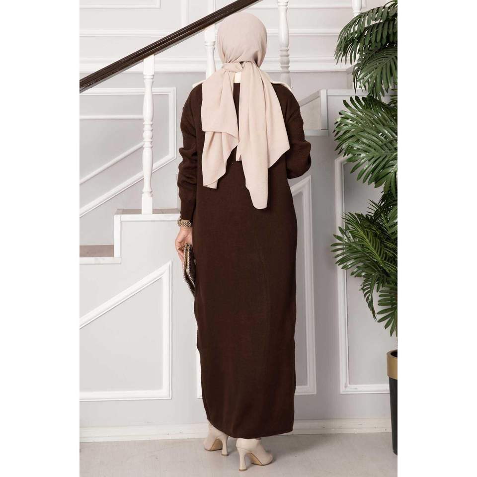 ชุดถักลวดลายประดับเพชรสีน้ำตาล