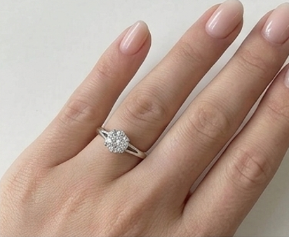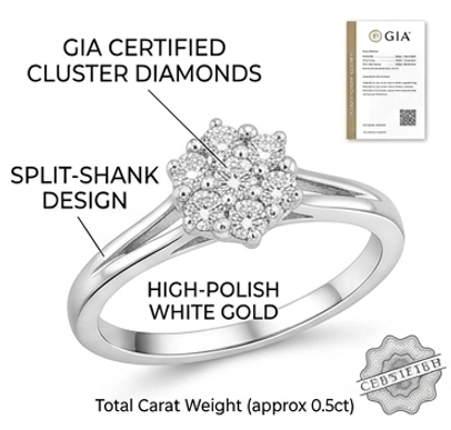 14K White Gold Luxury Flower Cluster Diamond Engagement Ring 0.5ct Brilliant Split-Shank Bridal Gift Jewelry