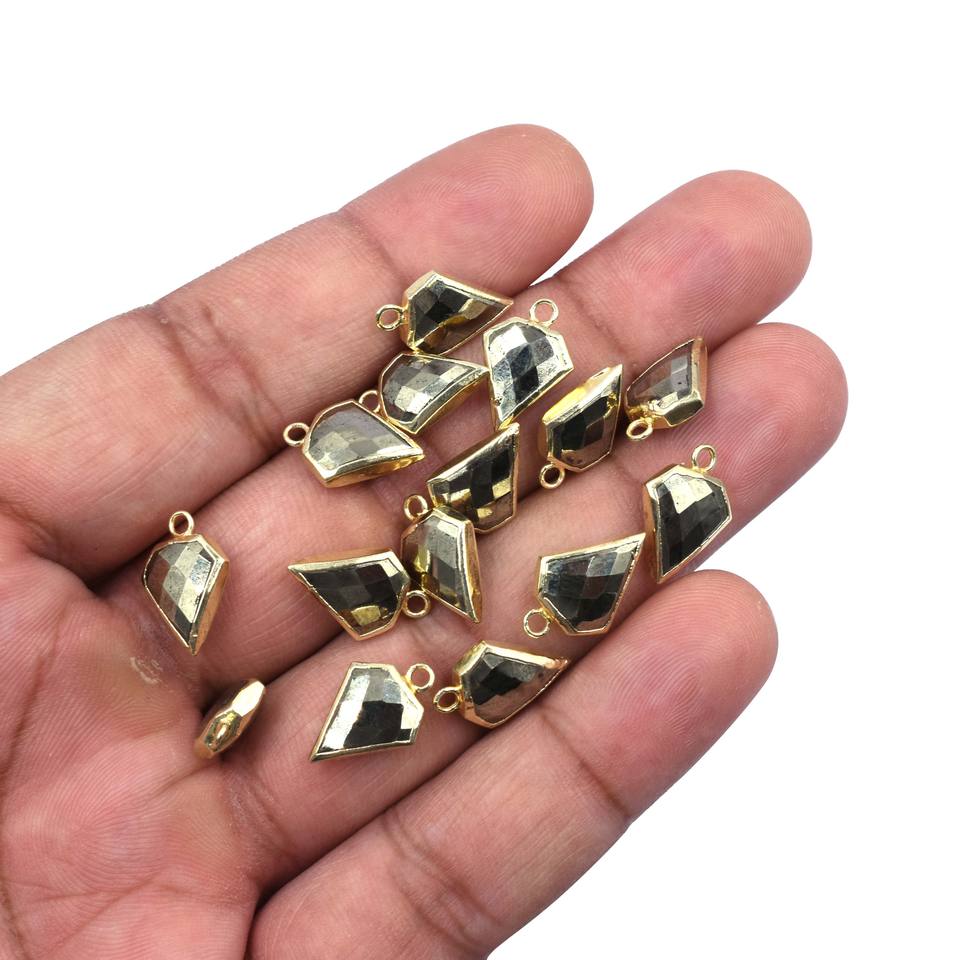 จี้ทองเหลืองรูปเพชรพร้อมชุบทอง14K 14-16มม. แหวนไพไรต์แบบเหลี่ยมเพชรพลอยอัญมณี