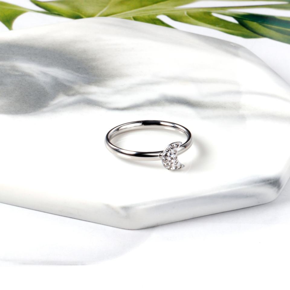 แหวนสแตนเลสสตีลชุบทอง 18K ประดับเพชร ดีไซน์รูปพระจันทร์ สวยหรูสำหรับผู้หญิง