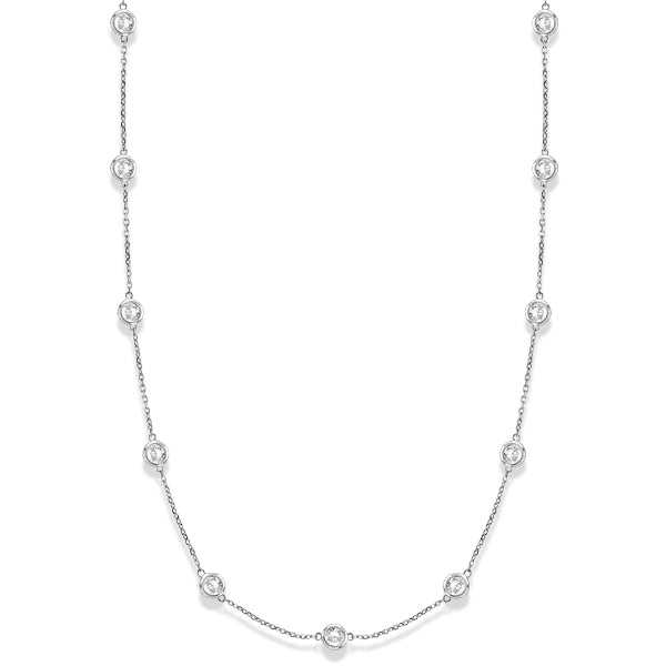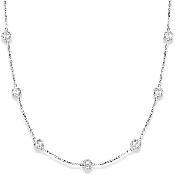 สร้อยคอเพชรทรงเหลี่ยมประดับขอบทองคำขาว 14k 3.00 กะรัต