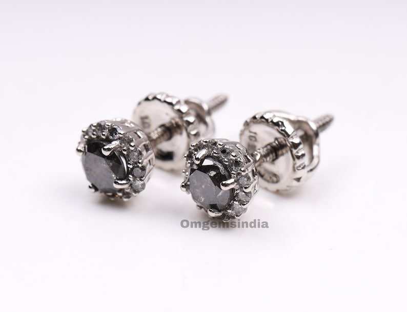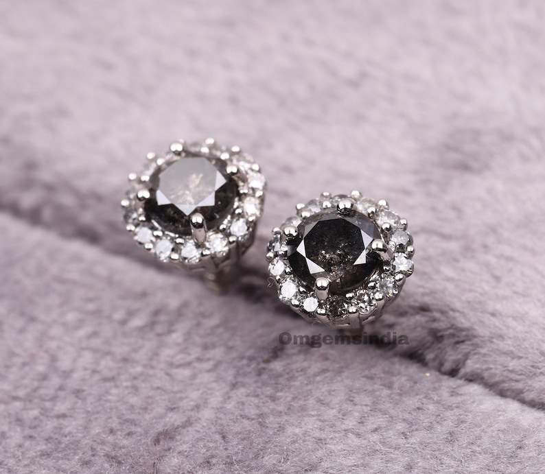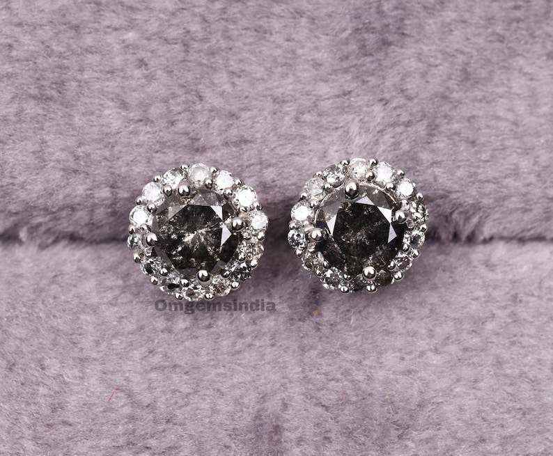 Women's Bohemian Style Lab Grown Diamond Stud Earring Pair | Solitaire Earring Salt Pepper Brilliant Cut | Diamonds Earrings