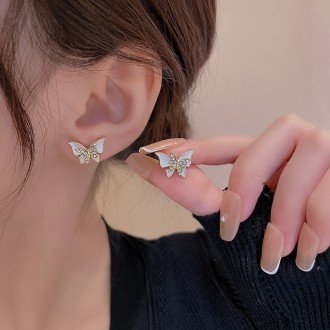 แหวนเพชรประดับผีเสื้อแบบเรียบง่ายเข็มเงินหรูหราแฟชั่นขนาดเล็กต่างหูเครื่องประดับ M111