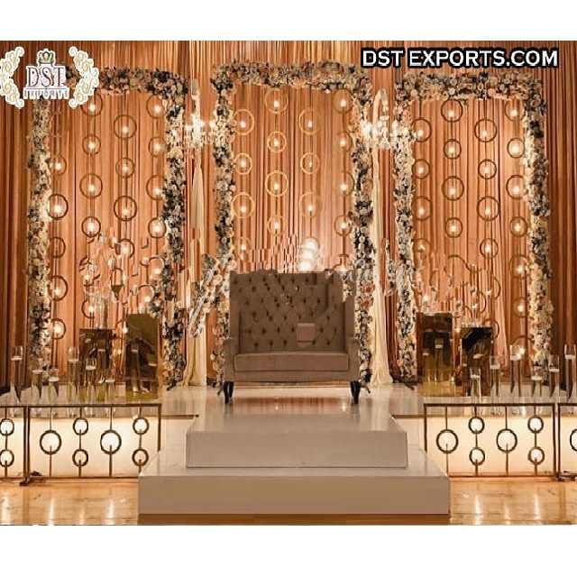 ชุดตกแต่งงานแต่งงานด้วยเทียนติดผนัง ดีไซน์อินเดียสุดหรูหรา ตกแต่งเวทีงานแต่งงาน ดีไซน์ยอดนิยม ผนังเทียนโลหะสีทอง สไตล์อเมริกัน