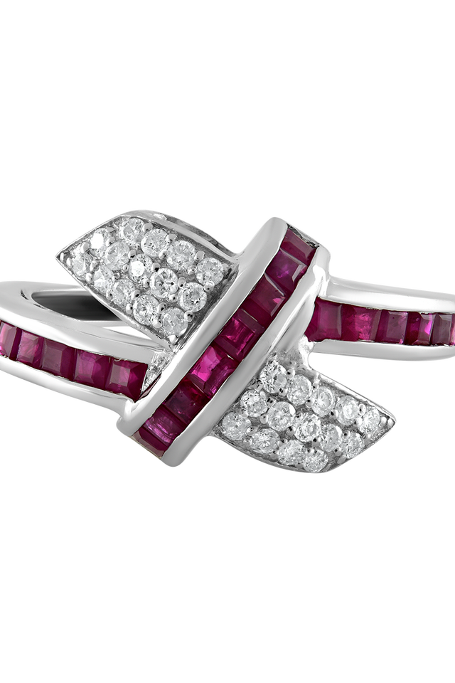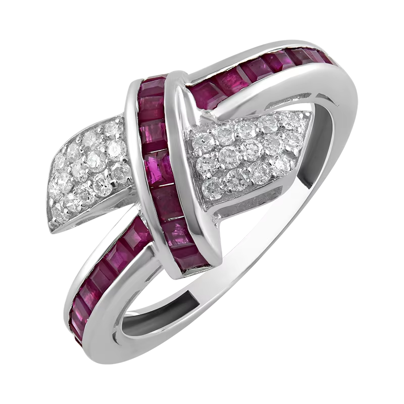 แหวนเพชรและทับทิมเงินแท้ 92.5 รุ่น KLSR-11431