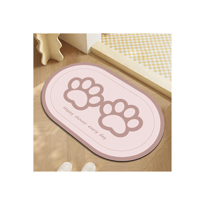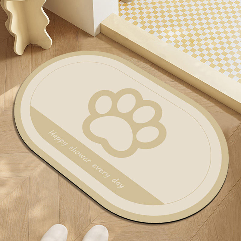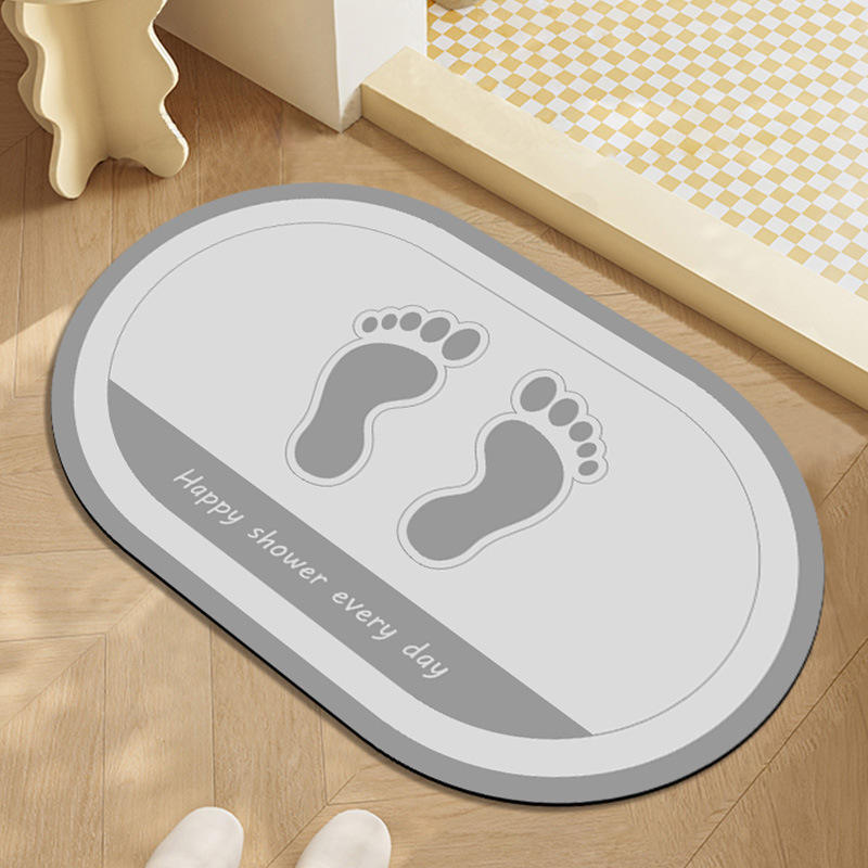 แผ่นรองอาบน้ำดินไดอะตอมเมียร์ รูปทรงวงรี ดีไซน์มินิมอล ลายรอยเท้า ดูดซับน้ำ กันลื่น แห้งเร็ว ทนทานต่อการสึกหรอ สำหรับห้องน้ำ