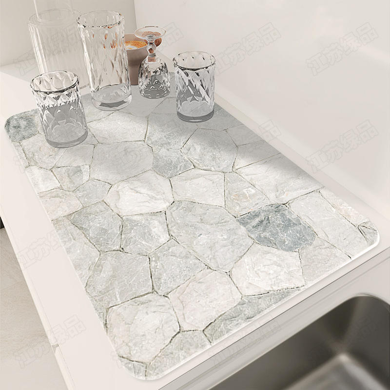แผ่นรองเคาน์เตอร์ครัวไดอะตอมเมเชียสเอิร์ธ 40x30 ซม. ลายหินอ่อน แผ่นรองโต๊ะดูดซับน้ำ พร้อมขาซิลิโคน ดีไซน์ทนทาน