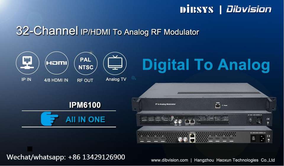 Dibvision IPM6102 48/64 ช่องสัญญาณ Mpeg2 H.264 H.265 แปลงวิดีโอ IP เป็นอนาล็อก NTSC RF Modulator รองรับ DVB ซับไตเล็ต ซีลอิดแคปป์ชั่น ตัวเครื่องขนาด 2U