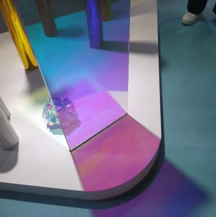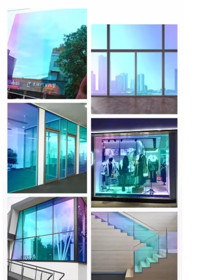 ฟิล์มกระจกไดโครอิก PET ป้องกันการระเบิด ฉนวนกันความร้อน เอฟเฟกต์สีรุ้ง เปลี่ยนสีได้ สติกเกอร์ตกแต่งสีรุ้ง