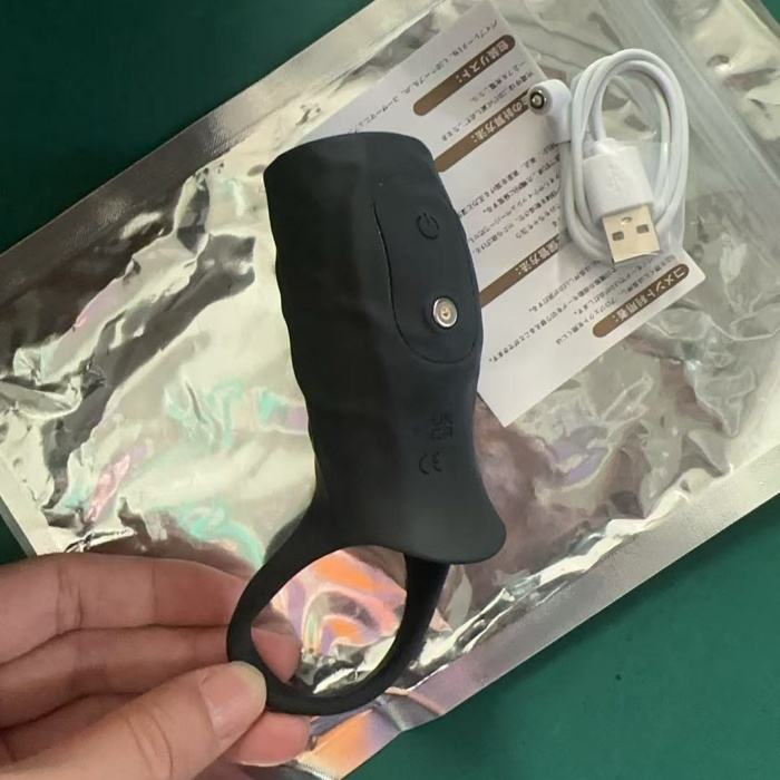 แหวนรัดองคชาตซิลิโคนสีดำแบบชาร์จ USB พร้อมปลอกเพิ่มขนาดและระบบสั่น เซ็กส์ทอย ดิลโด้สีดำ ปลอกเพิ่มขนาดองคชาต