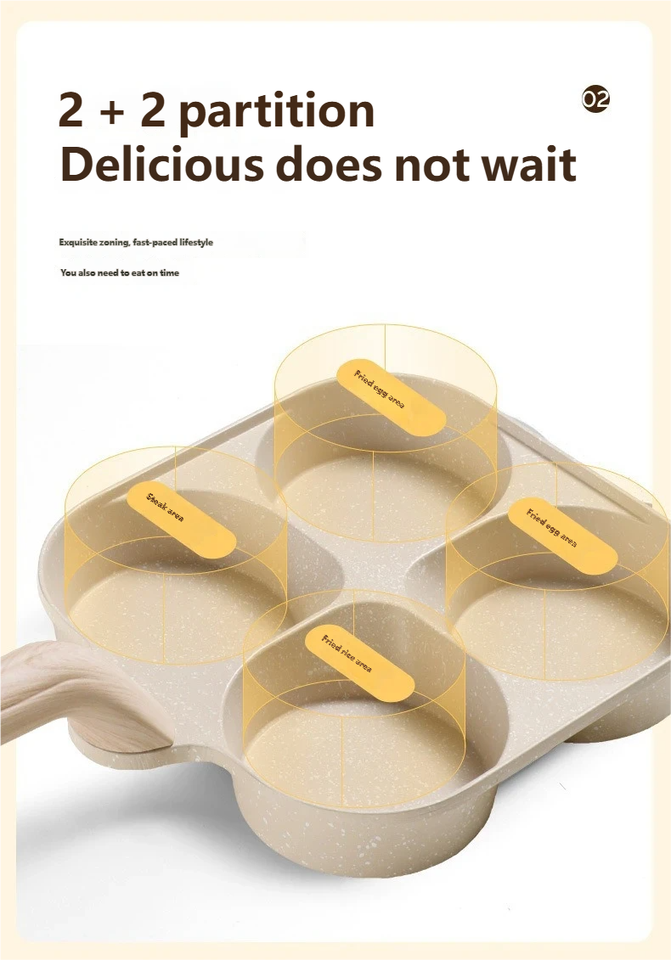 กระทะอะลูมิเนียมหล่อขึ้นรูป ไม่ติดกระทะ สำหรับทอดไข่/แฮมเบอร์เกอร์ รุ่นฮิตปี 2026 แบบสี่หลุม ก้นแบน ใช้กับเตาแม่เหล็กไฟฟ้าได้ กระทะขนาดเล็ก