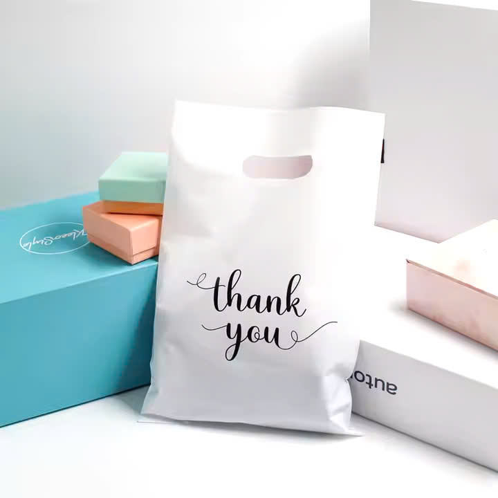 ถุงพลาสติกไดคัทผู้ผลิตในเวียดนามถุงพลาสติกไดคัทพร้อมด้ามจับที่แข็งแรงพิมพ์ลายพร้อมโลโก้ที่กำหนดเอง