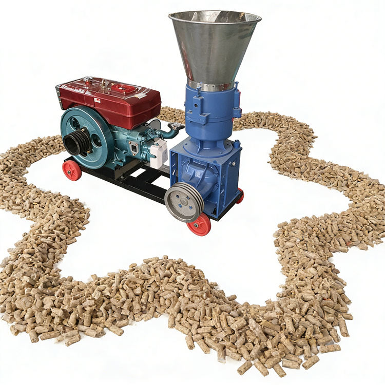 Diesel Pellet Mill 125 Type 25-50kg/h Starter Animal Feed Machine 115kg 1 Year Warranty