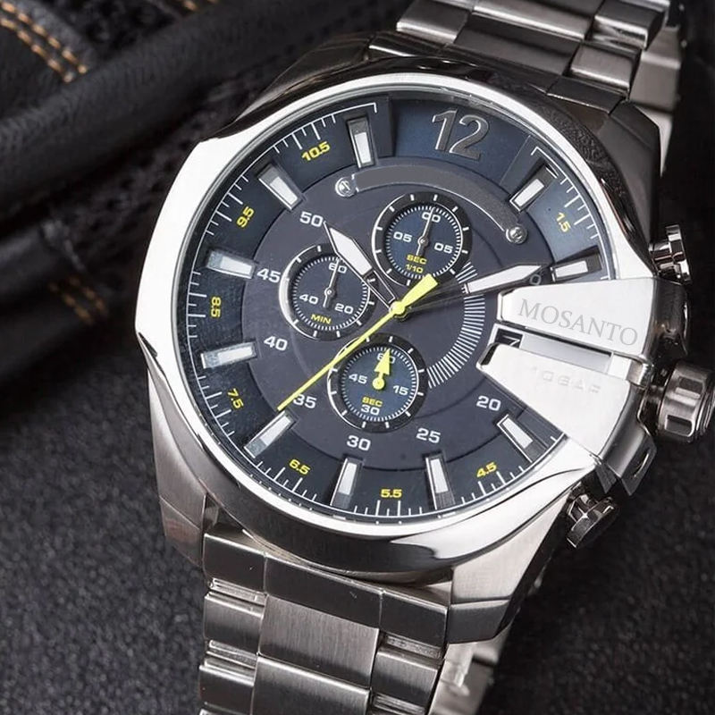Dieselt Mens Quartz Watch Stainless Steel Strap Sapphire Crystal Waterproof 100m Double Time Zones Fashion Business Style DZ4355