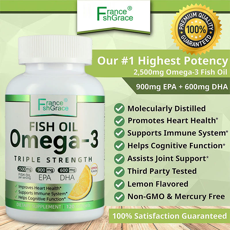 อาหารเสริมน้ำมันปลาโอเมก้า 3 120 แคปซูลนิ่ม พร้อม EPA และ DHA เพื่อสุขภาพหัวใจที่ดีขึ้นและช่วยเสริมสร้างการทำงานของสมอง