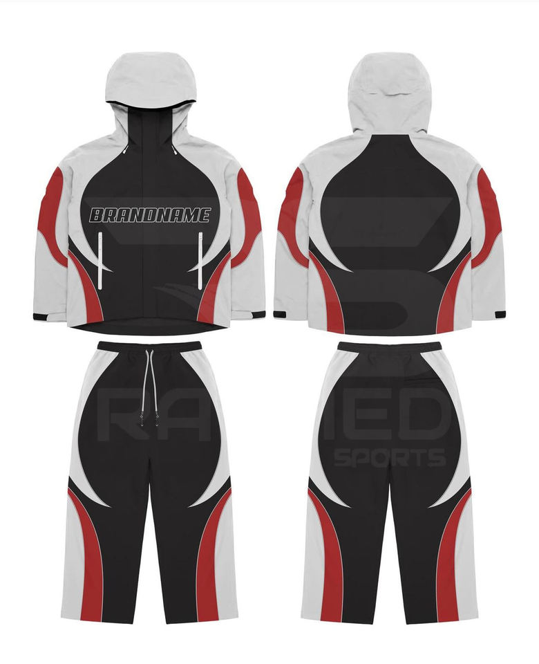 ชุดวอร์มกันลมไนลอน 100% สีสันหลากหลาย กางเกงวอร์มและแจ็คเก็ตมีฮู้ดซิป ชุดวอร์มกันลมทรงโอเวอร์ไซส์สำหรับผู้ชาย