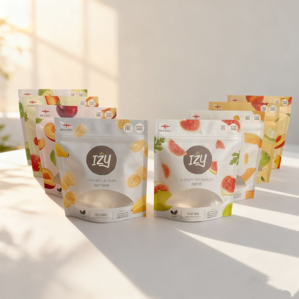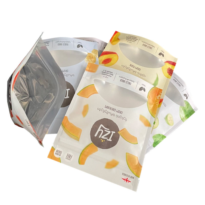 ถุงใสสำหรับใส่อาหารแบบตั้งได้มีซิปสำหรับเก็บผลไม้แห้งหลายรสชาติ