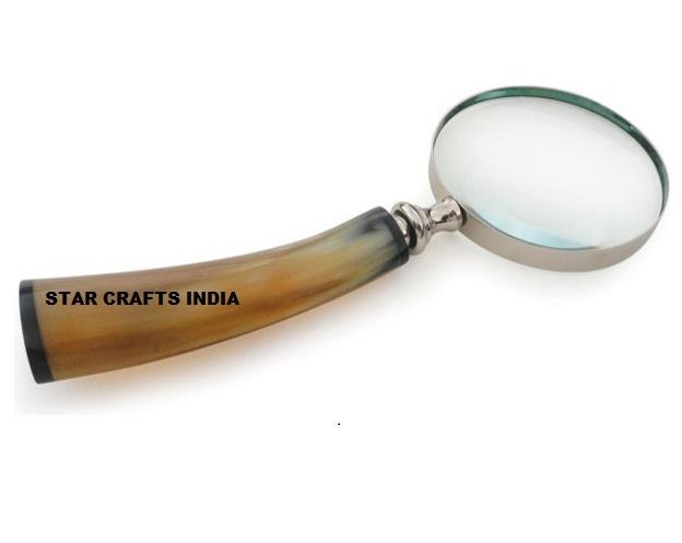 แว่นขยายมือถือพร้อมแว่นขยายกรอบทองเหลืองระดับพรีเมี่ยมพร้อมที่จับกระดูกแกะสลักด้วยมือ