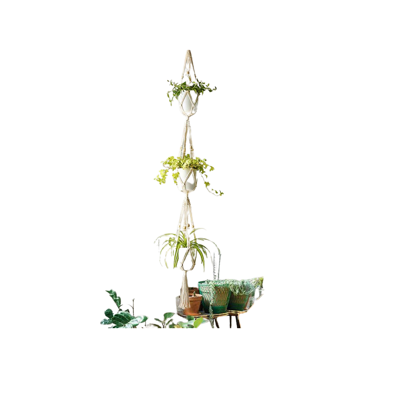 ไม้แขวนต้นไม้มาคราเม่แบบแขวนในร่มกลางแจ้งที่แขวนกระถางปลูกต้นไม้ที่แขวนสำหรับตกแต่งบ้าน