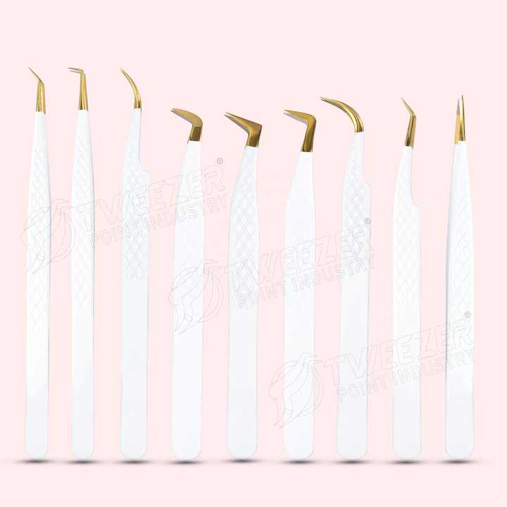 ชุดแหนบขนตาแต่ละชิ้นทำจากเหล็กญี่ปุ่นมีรูปทรงต่างๆพร้อมด้ามจับเพชรสำหรับช่างขนตาผู้เชี่ยวชาญด้านความงาม